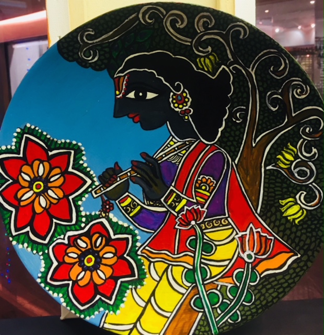 Krishna on wooden plate