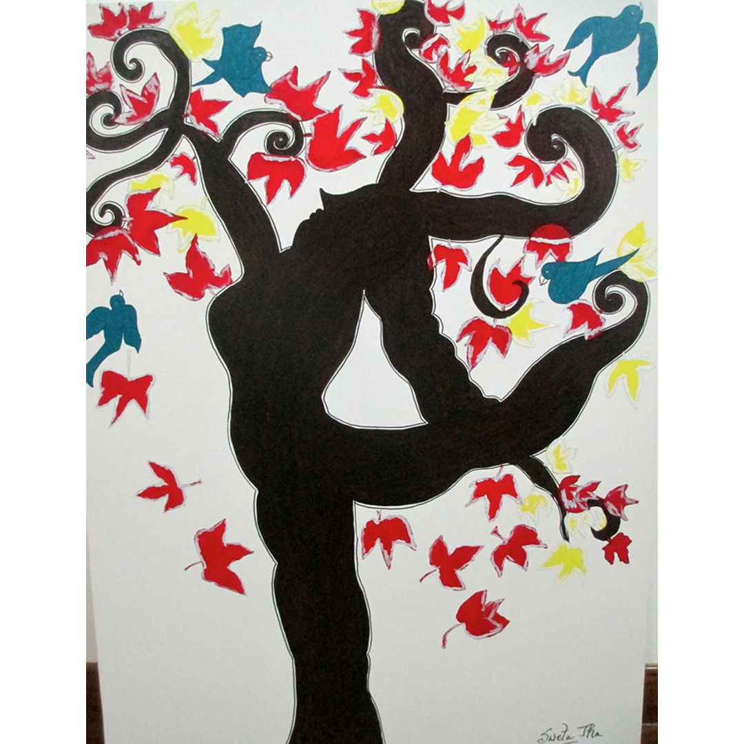This painting depicts a tree in “Modern Madhubani” which essentially is a blend of modern art form with the Indian folk art of Madhubani painting. This tree symbolises every growing life and prosperity.