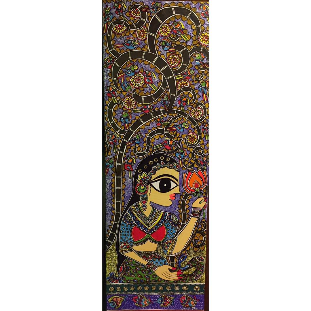 It was mentioned in Sanskrit literature from the earliest sources. A good omen which attracts wealth and happiness. It is a feminine tree of life. Colorful birds nest on the leafy branches while fish swim up the tree’s trunk.