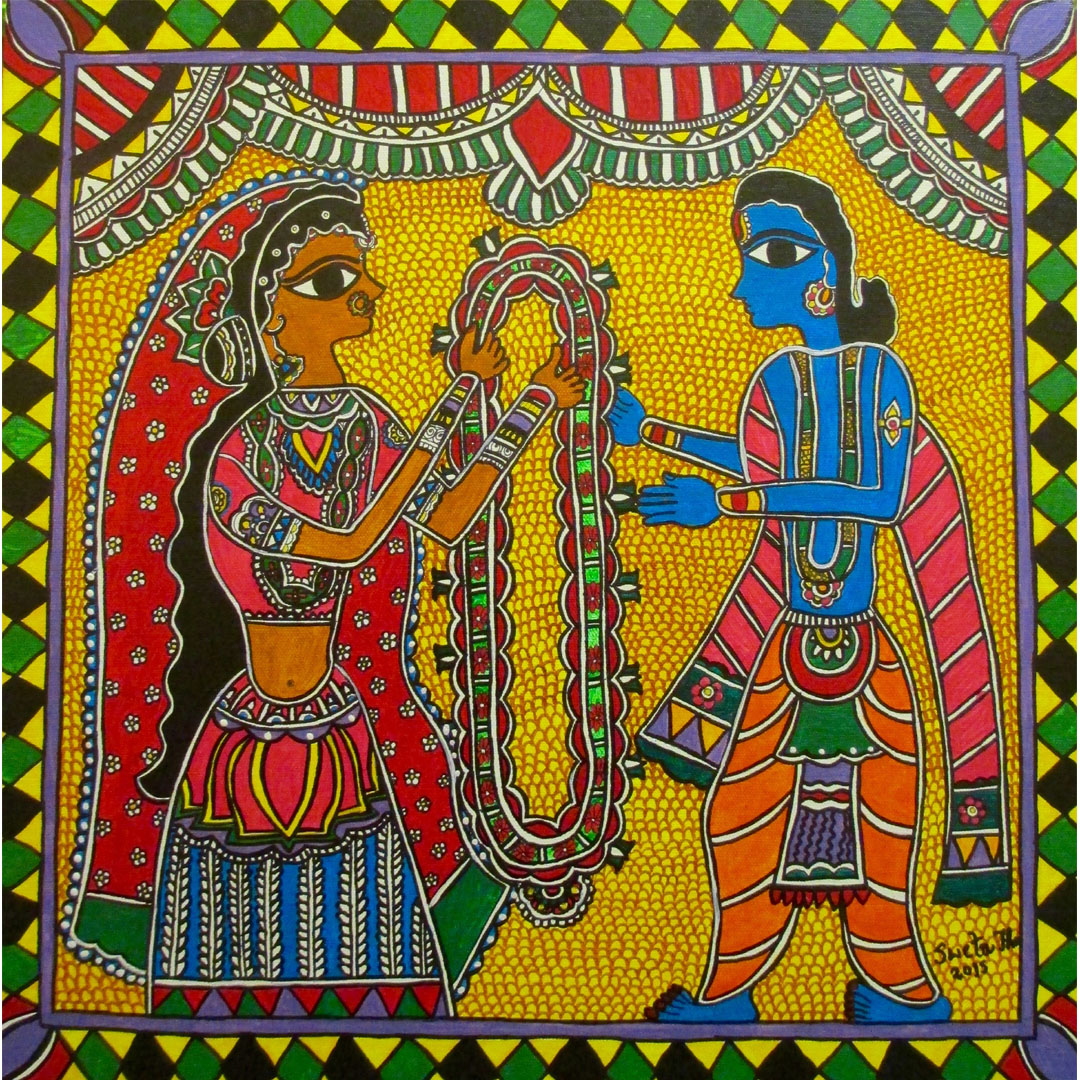 Swayamvara, in ancient India, was a practice of choosing a husband from among a list of suitors, by a girl of marriageable age. Swayam in Sanskrit means self and Vara means groom in this context.