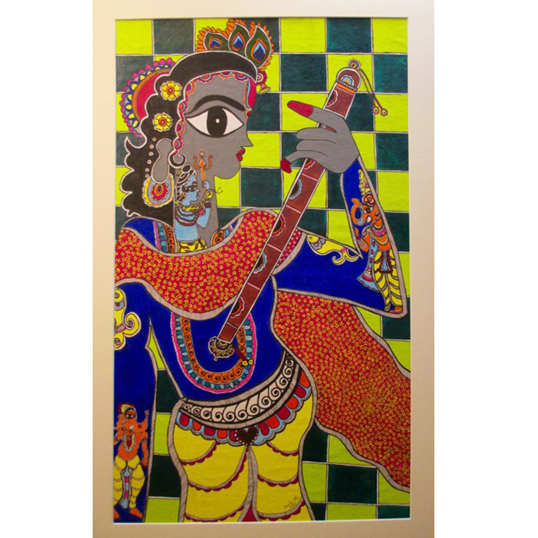 In this work, I have depicted Krishna draped in yellow, blue and red. You could also see Lord Shiva and Lord Ganesha reflections on his body.